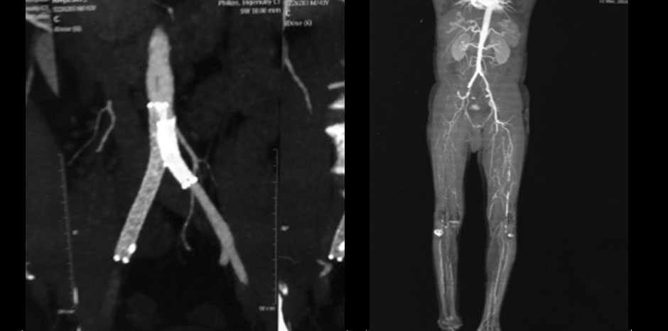 • B/l Iliac artery stenting with left femoro-popliteal bypass done in March 2013